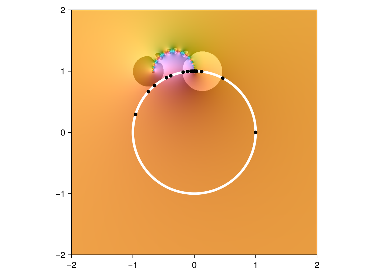 scatter!(φ.(nodes(r.fun)), color=:black, markersize=8)